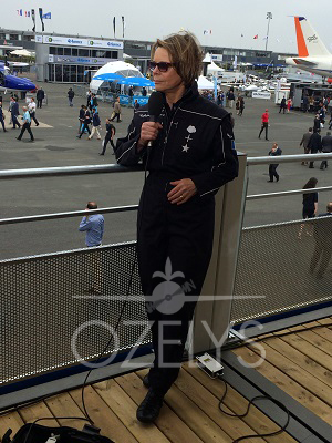 Catherine Maunoury, directrice du musée de l’Air et de l’Espace, accorde une itw en direct à France 3, avant d’effectuer sa démonstration de voltige.